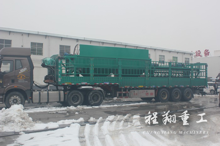 風(fēng)雪無(wú)阻,2018年1月8日鄭州程翔重工5萬(wàn)噸粉狀有機(jī)肥生產(chǎn)線發(fā)往黑龍江伊春市,配套5千噸/年生物質(zhì)顆粒機(jī),符合東北地區(qū)秸稈回收利用新模式。