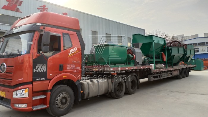 查看 > 01 2021/03本次發(fā)貨的豬糞有機(jī)肥生產(chǎn)線主要設(shè)備有:鏟車(chē)喂料、臥式攪拌機(jī)、有機(jī)肥濕法造粒機(jī)、滾筒篩分機(jī)以及烘干設(shè)備。BB肥攪拌機(jī)作為拋圓設(shè)備使用