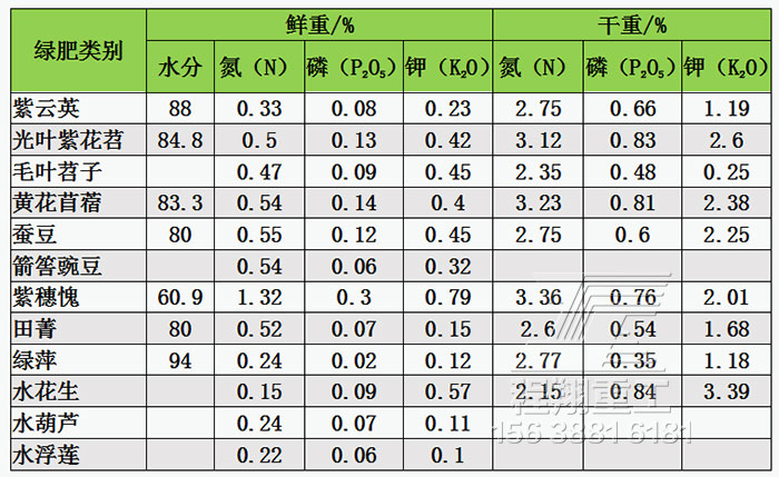 表1 幾種主要綠肥的養(yǎng)分含量