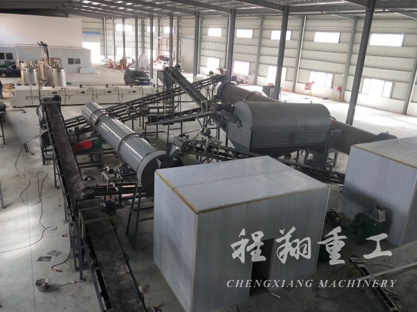 查看 > 20 2020/11由于該豬糞秸稈有機(jī)肥料生產(chǎn)線產(chǎn)量較大,因此分為多車裝置運(yùn)輸。主要的豬糞加工設(shè)備有:大型秸稈粉碎機(jī)、履帶式翻堆機(jī)、臥式攪拌機(jī)、新型三合一造粒機(jī)、不同型號的滾筒篩分機(jī)以及多個型號的烘干冷卻設(shè)備。滾筒烘干設(shè)備風(fēng)頭以及風(fēng)機(jī)安置熱風(fēng)爐以及冷卻設(shè)備多個烘干冷卻設(shè)備履帶式翻堆機(jī)以及大型秸稈粉碎機(jī)二次烘干設(shè)備滾筒篩分機(jī)以及鏟車喂料倉本次豬糞秸稈有機(jī)肥料生產(chǎn)線工藝設(shè)計(jì)流程為:利用大型秸稈粉碎機(jī)將稻草秸稈等粉碎均勻,