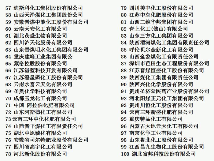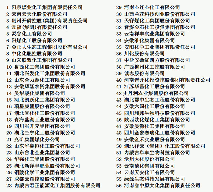 2018年化肥生產(chǎn)百強企業(yè)名單