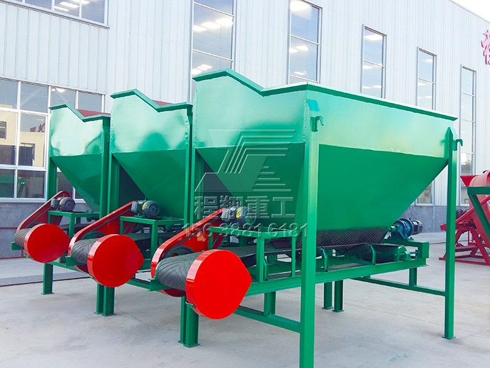 本次牛糞全套有機(jī)肥料設(shè)備生產(chǎn)工藝采用槽式好氧發(fā)酵,利用翻堆槽發(fā)酵既干凈又能最大化的利用有限的場地,增加糞便處理量。由于客戶對(duì)于顆粒有機(jī)質(zhì)含量以及NPK有特殊要求,因此我們?yōu)榭蛻魧iT定制了一臺(tái)三倉的靜態(tài)配料系統(tǒng)。