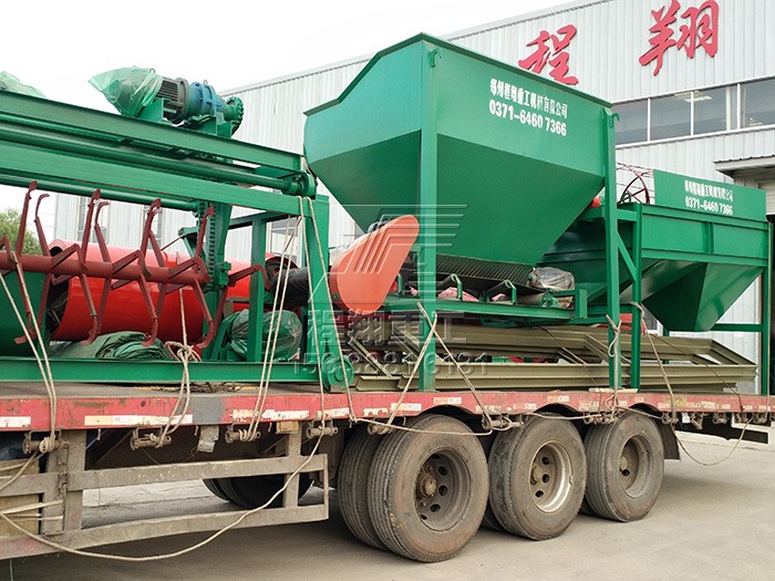 查看 > 20 2020/11由于該豬糞秸稈有機(jī)肥料生產(chǎn)線產(chǎn)量較大,因此分為多車裝置運(yùn)輸。主要的豬糞加工設(shè)備有:大型秸稈粉碎機(jī)、履帶式翻堆機(jī)、臥式攪拌機(jī)、新型三合一造粒機(jī)、不同型號(hào)的滾筒篩分機(jī)以及多個(gè)型號(hào)的烘干冷卻設(shè)備。滾筒烘干設(shè)備風(fēng)頭以及風(fēng)機(jī)安置熱風(fēng)爐以及冷卻設(shè)備多個(gè)烘干冷卻設(shè)備履帶式翻堆機(jī)以及大型秸稈粉碎機(jī)二次烘干設(shè)備滾筒篩分機(jī)以及鏟車喂料倉本次豬糞秸稈有機(jī)肥料生產(chǎn)線工藝設(shè)計(jì)流程為:利用大型秸稈粉碎機(jī)將稻草秸稈等粉碎均勻,