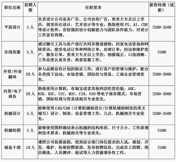 因公司規(guī)模日益擴(kuò)大,技術(shù)、業(yè)務(wù)等方面人員緊缺,現(xiàn)向廣大群眾誠(chéng)摯招納賢才。